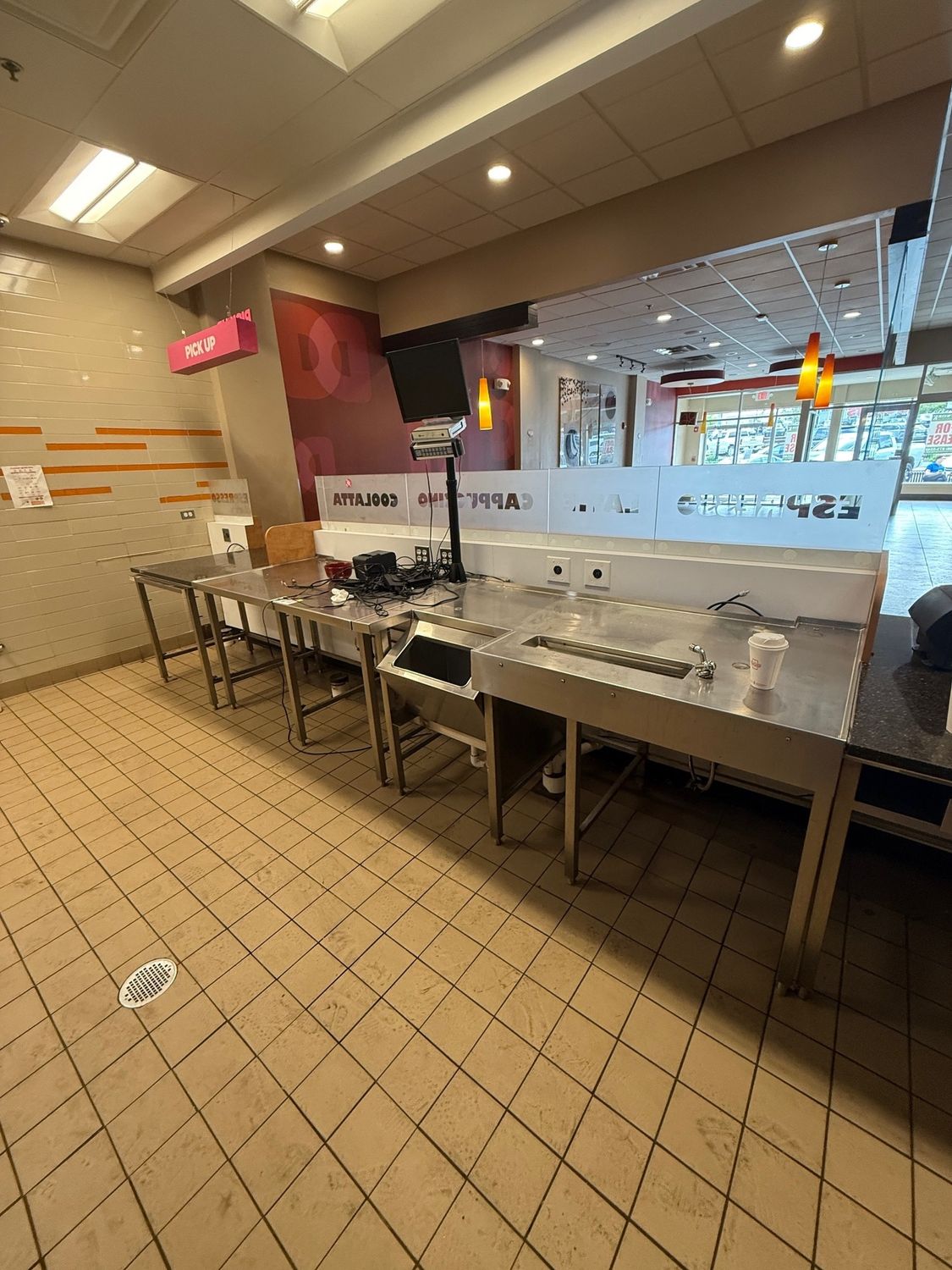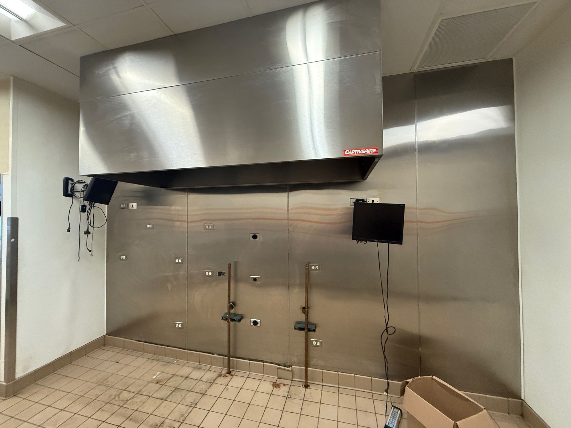 Former donut shop location. Two hoods (8' & 6'). Walk in cooler and freezer. Sinks and plumbing in place. Very easy to get your new concept up and running. Full turn key sandwich, donut, coffee buildout in place.