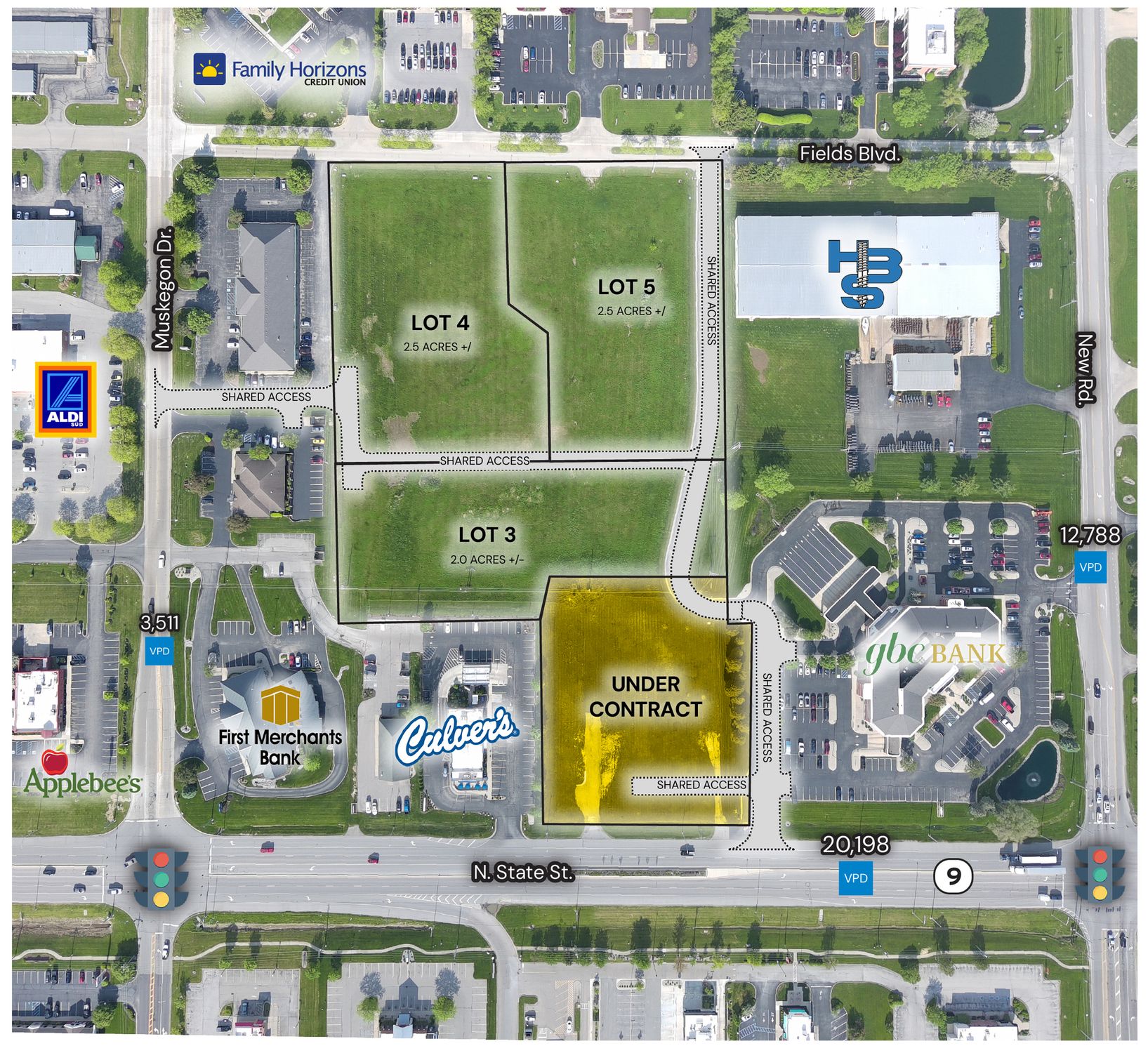 +/- 9.3 Acres over 5 lots Available in a Highly Dense Retail Corridoron State Road 9 in Greenfield, IN, just south of I-70. Looking for Big Box Retail or Restaurant Uses. Heavy daytime population andtraffic volume with fast growing businesses and residentialareas. Hancock County was the #1 fastest growing county in Indiana. Surrounding national retailer’s include Culver’s,Walmart, Panda Express, Starbucks, Chick-Fil-A, The HomeDepot, ALDI, and many more!