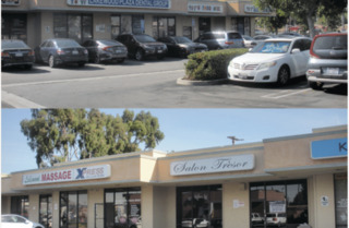 Former Hair Salon Space High Identity Location Active Retail Strip Center Parapet Signage Two Entrances